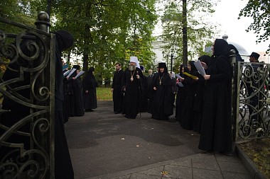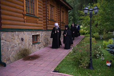 Его Высокопреосвященству сослужили руководитель Аппарата Синодального отдела религиозного образования и катехизации протоиерей Александр Прытков, а также братия храма.
