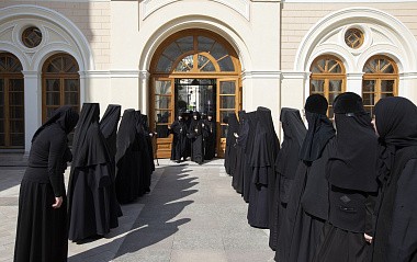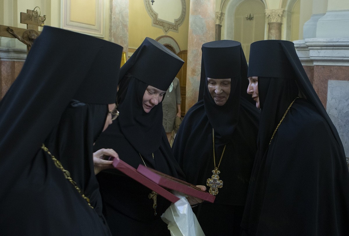В завершение все проследовали на трапезу, где духовенство и сестры поздравили с избранием свою новую игумению.