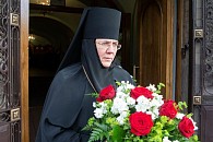 Сестры и клир обители встретили игумению Елисавету праздничным колокольным звоном и цветами.