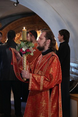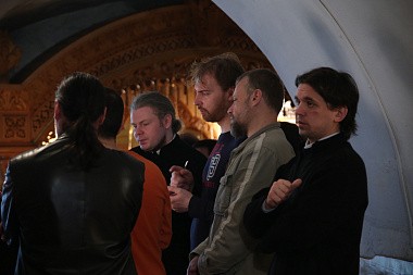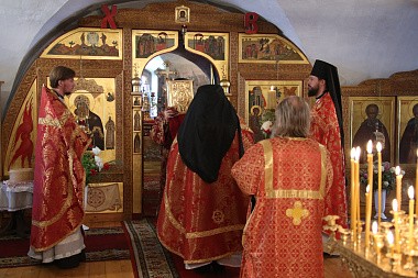 За Божественной литургией вместе с иноками монастыря служил ректор Николо-Угрешской Духовной семинарии игумен Иоанн (Рубин).