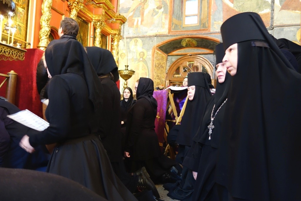 За богослужением молились настоятельница Богородице-Рождественского ставропигиального женского монастыря игумения Викторина (Перминова) с сестрами.