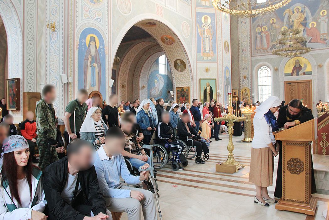 Участников специальной военной операции сопровождали сестры милосердия, трудящиеся при храме святых бессребреников Космы и Дамиана, опекающем госпиталь.