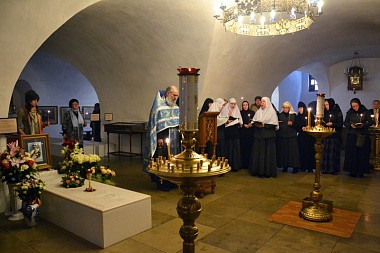 Клирик обители милосердия протоиерей Александр Дубинин совершил панихиду у гробницы Сергея Александровича в храме Преподобного Романа Сладкопевца усыпальницы бояр Романовых.