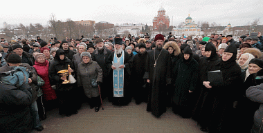 Молебен на освящение памятника совершил клирик Покровского Хотькова ставропигиального женского монастыря протоиерей Евгений Корчуков.