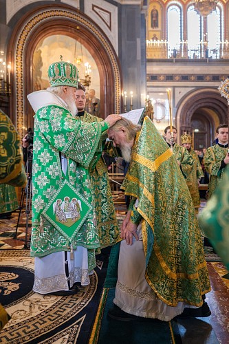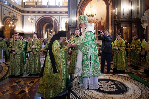 Святейший Патриарх Кирилл совершил славление празднику, после чего обратился к верующим с Первосвятительским словом.