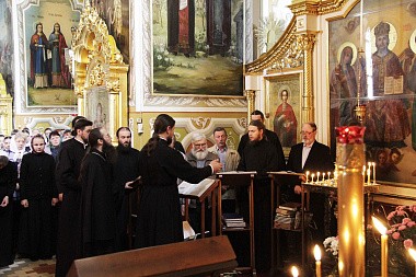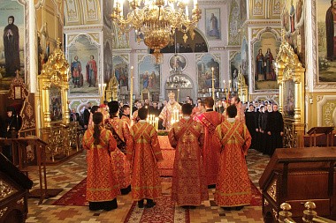 Накануне праздника Его Высокопреосвященство возглавил всенощное бдение святому вмч. Георгию в сослужении монастырского и лаврского духовенства.