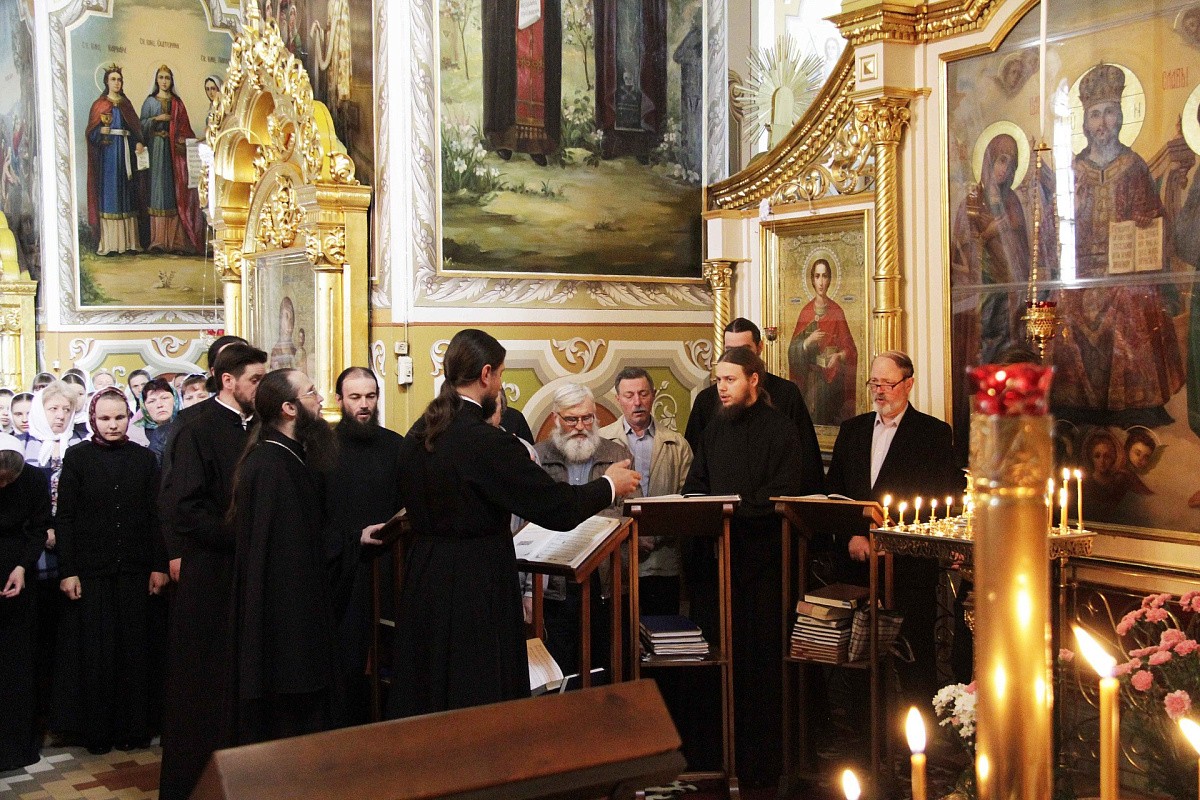 За богослужением пели два сестринских хора и братский хор Почаевской лавры.