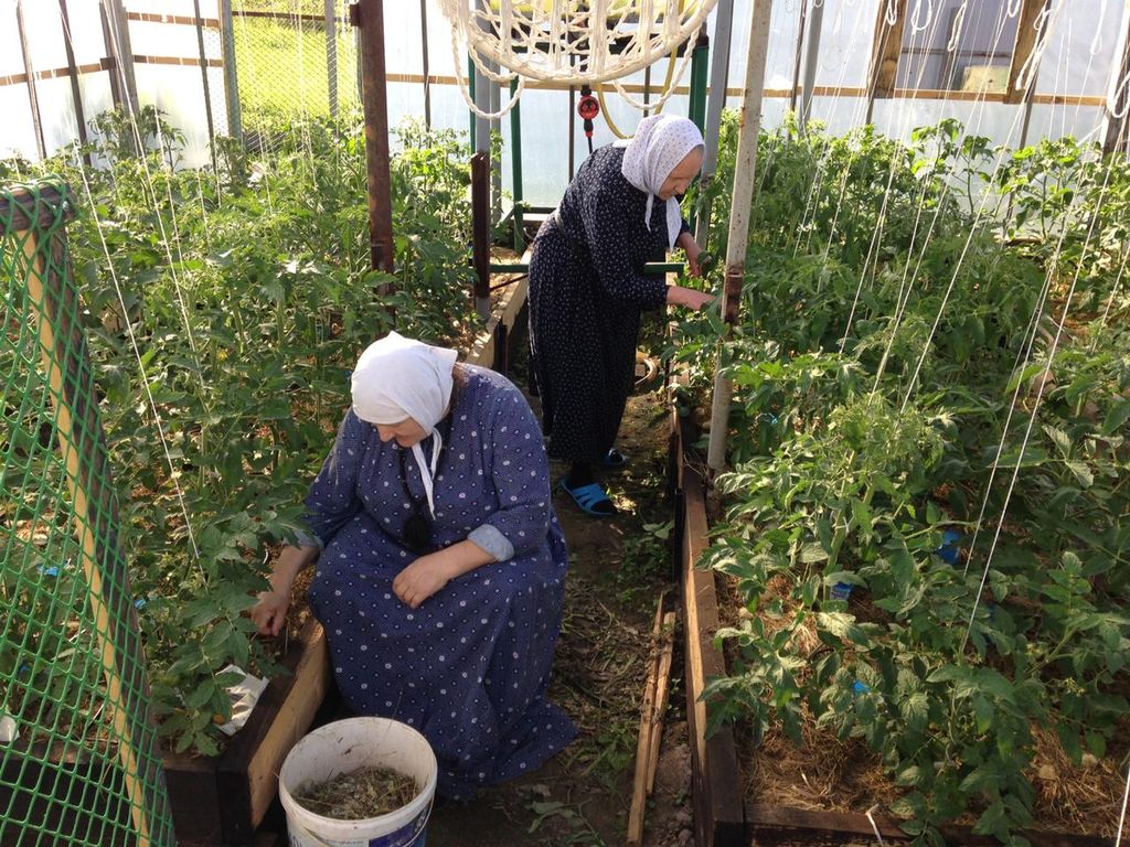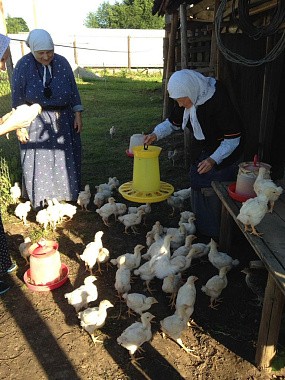 Во время карантина, когда бабушки вынуждены были сидеть на самоизоляции, они вырастили много чудесной рассады и были очень рады, что теперь могут проводить время в огороде, делать то, что они любят и что им по силам. Конечно, сами они не смогли бы вести такое хозяйство – тяжелую работу выполняют сотрудники и волонтеры. А жительницы «Отчего дома» уже мечтают, как в июле будут угощать всех своими овощами, делятся друг с другом рецептами солений на зиму, учат поваров кулинарным секретам и очень рады, что могут быть полезны. Большая радость у Надежды – охотницы потрудиться в курятнике: к ее любимым индюшкам прибавились цыплята – их привезли из монастыря. Когда они подрастут, можно будет обеспечить себя свежими яйцами.