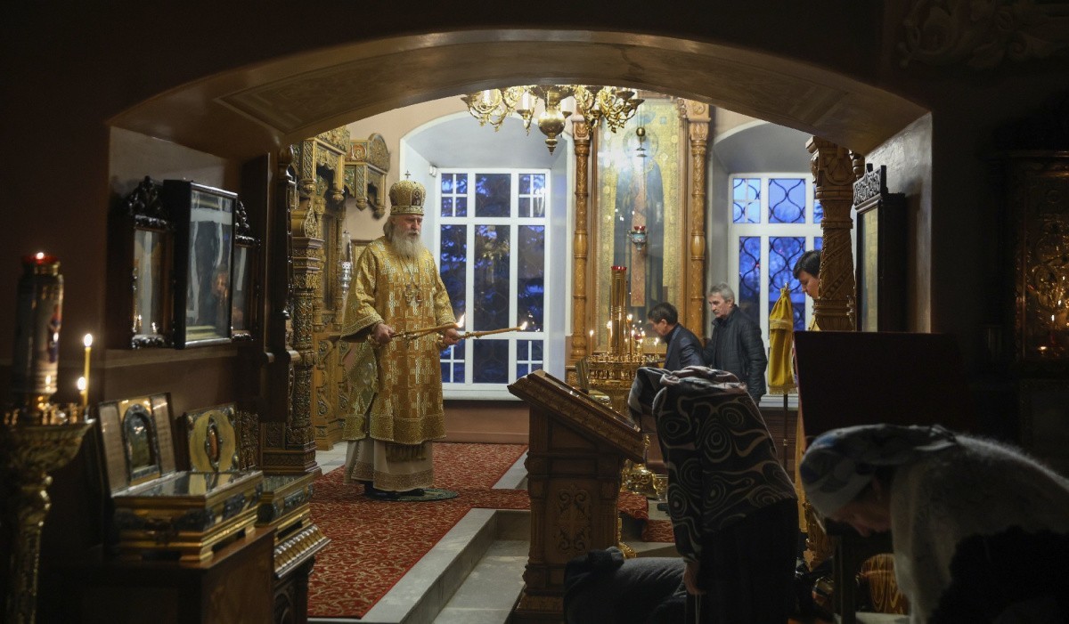Его Высокопреосвященству сослужили наместник Высоцкого монастыря епископ Серпуховский Роман, братия обители в священном сане.