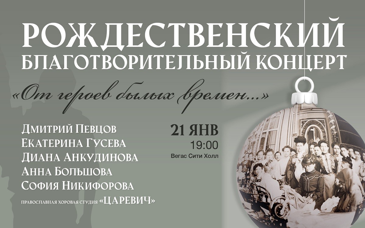21 января 2024 года в 19.00 в концертном зале «Вегас Сити Холл» в подмосковном Красногорске пройдет благотворительный рождественский концерт «От героев былых времен…» с участием известных артистов. Вырученные средства будут направлены на гуманитарную помощь раненым и воинам в зоне боевых действий.