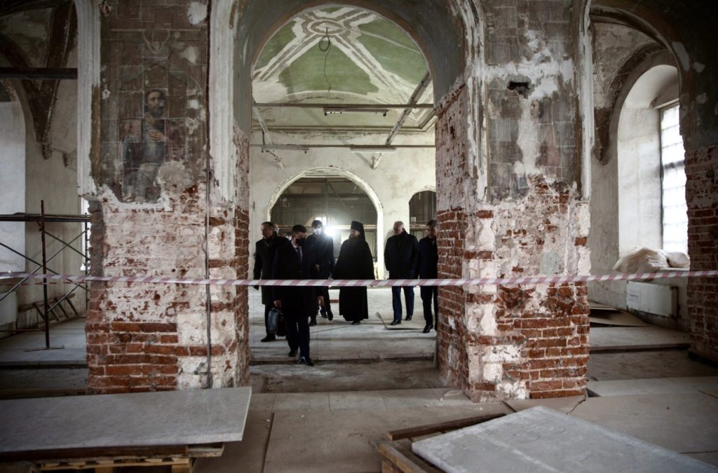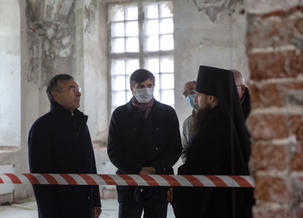 Министры посетили Петровский собор, являющийся одним из древнейших памятников московского зодчества эпохи великого князя Василия III, обетный храм императора Петра I во имя преподобного Сергия Радонежского, а также ознакомились с ходом реставрационных работ в Боголюбском храме – родовой усыпальнице Петра I по материнской линии.