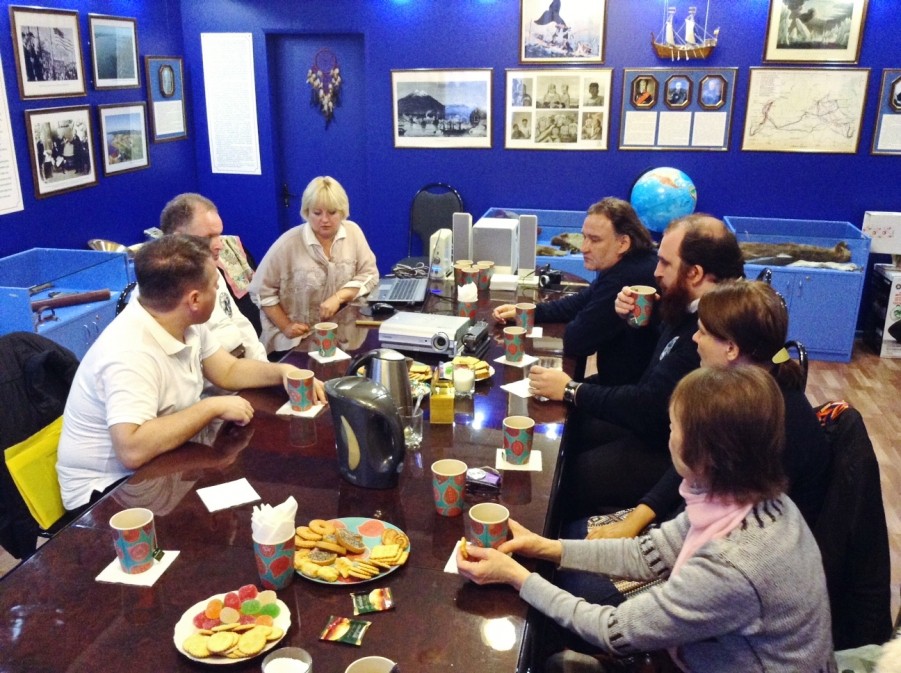 В этот же день участники поездки встретились с сотрудниками Миссионерского отдела епархии, которые рассказали о миссионерских и просветительских проектах Рязани, поделились своим видением миссионерской работы на приходах. В заключение встречи Дмитрий Захаркин выступил с сообщением о служении братства, а также продемонстрировал специально привезенные миссионерские материалы. Членами братства была предложена инициатива о включении имени преподобного Германа Аляскинского в список Собора Рязанских святых. После посещения Миссионерского отдела епархии группу ждала экскурсия местного краеведа по святым местам Рязани.