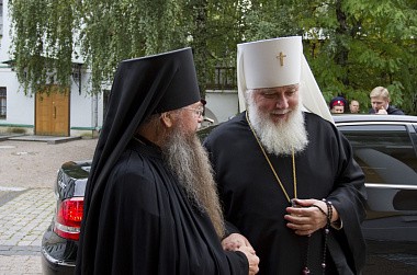 За всенощным бдением Его Высокопреосвященству сослужили наместник Даниловой обители архимандрит Алексий (Поликарпов) с братией монастыря в священном сане.