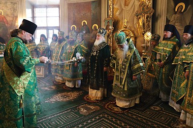 В свою очередь, митрополит Арсений передал наместнику монастыря отцу Алексию, братии, прихожанам и паломникам обители праздничное поздравление от Предстоятеля Русской Православной Церкви.