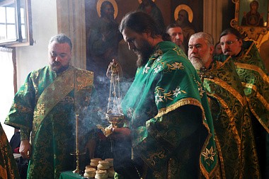 По окончании Литургии Высокопреосвященнейший владыка отслужил праздничный молебен перед ковчегом с частицами мощей святого благоверного князя Даниила Московского.