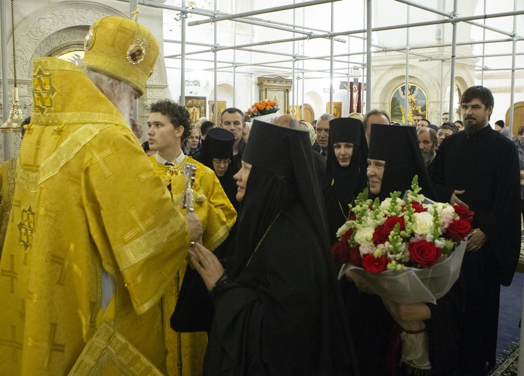 «Дорогой Владыка, примите от нас, настоятельниц московских монастырей, от всех сестер поздравления с 30-летием Вашей архиерейской хиротонии. Милостью Божией Вы родились в православной семье и Ваша благочестивая бабушка Анна посеяла семена веры в Вашем детском сердце. А вместе с ней и множество бабушек, которые в те трудные годы поливали и взращивали сердца своих внуков. Она посеяла в сердце искреннюю любовь к Богу. Еще в школьные годы Вас звали ”попом”, а потом стали звать ”архиереем”, и вот в какой-то момент благодаря святым старцам Оптинским Ваше сердце сугубо воспламенилось любовью ко Господу и Вы решили всю жизнь посвятить Богу. И Господь, видя Вашу веру, Вашу любовь, поставил Вас на свечнице церковной, и милостью Божией 30 лет Вы светите очень многим, согревая, обогревая, научая, вразумляя и молясь за всех тех, кто к Вам прибегает.