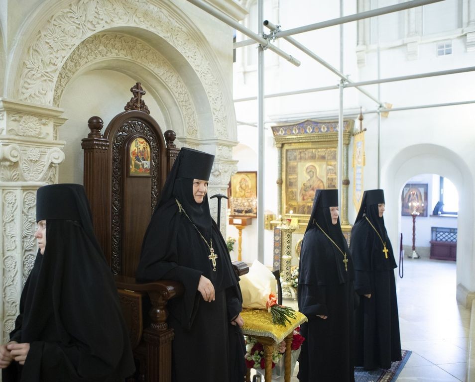 За Литургией молились заместитель председателя Синодального отдела по монастырям и монашеству, настоятельница Зачатьевского ставропигиального женского монастыря игумения Иулиания (Каледа) с сестрами, настоятельница Богородице-Рождественского ставропигиального женского монастыря игумения Викторина (Перминова), настоятельница Иоанно-Предтеченского ставропигиального женского монастыря игумения Елисавета (Никишкина), прихожане и гости обители.