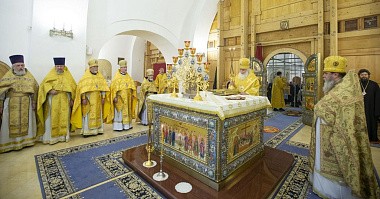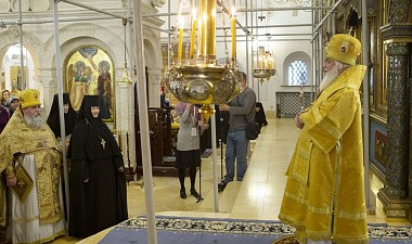 За богослужением Его Высокопреосвященству сослужили: митрополит Львовский и Галицкий Филарет, секретарь Патриарха Московского и всея Руси по г. Москве протопресвитер Владимир Диваков, клирики Зачатьевской обители, благочинные и священство Московской епархии.