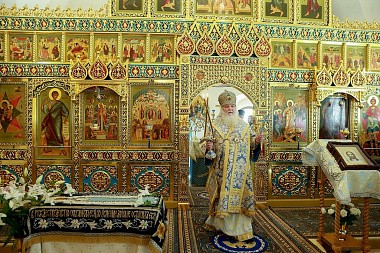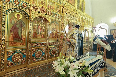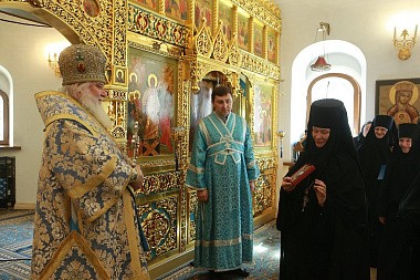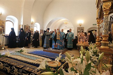 Архиерейское служение было приурочено к престольному празднику древнейшего сохранившегося храма на территории монастыря в честь Нерукотворного Образа Спасителя (год создания – 1696). В этом году обитель отмечает 25-летие совершения в Надвратном храме первой Божественной литургии и великого освящения храма в 1993 году.