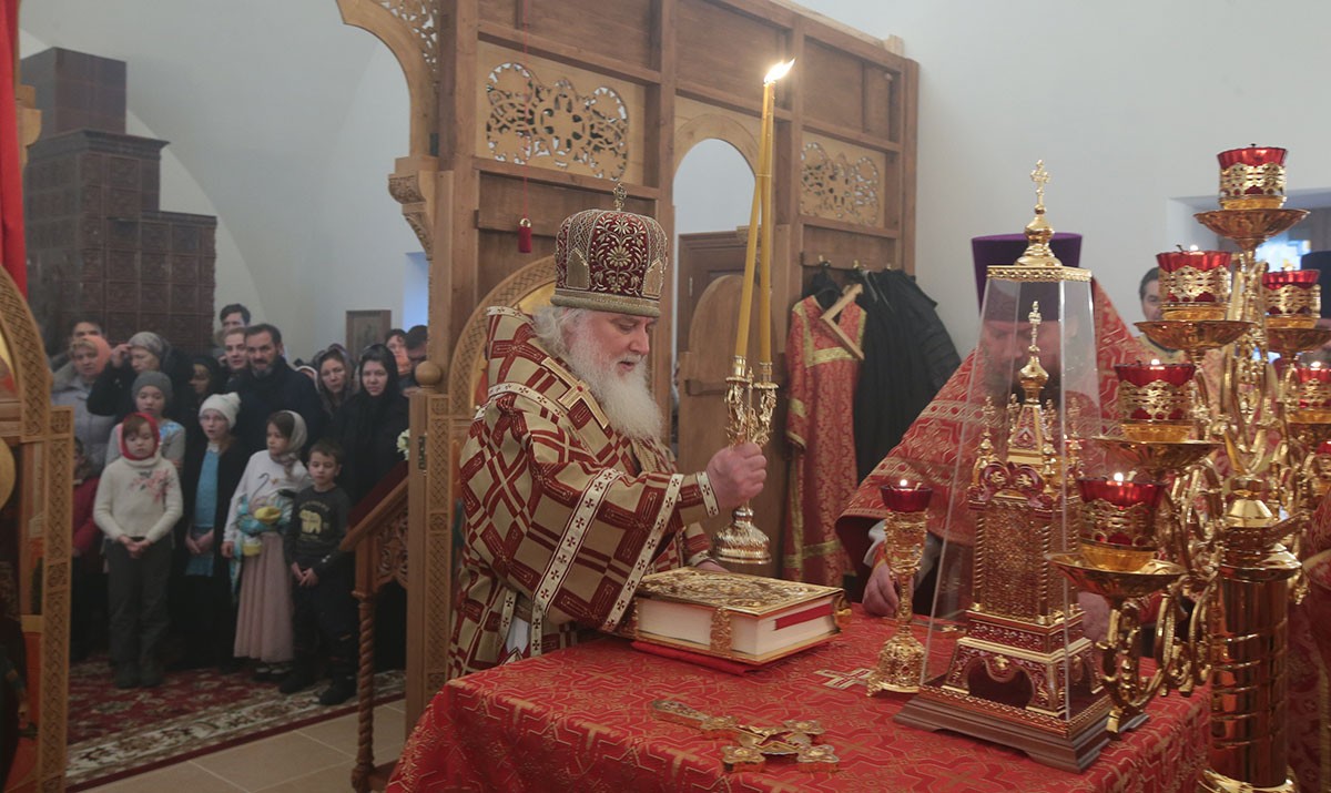 Накануне вечером в храме Святой великомученицы Анастасии Узорешительницы, отслужив вечерню и литию, за утреней по прочтении Евангелия и исполнения величания во время чтения канонов митрополит Арсений совершил помазание елеем молящихся в храме.