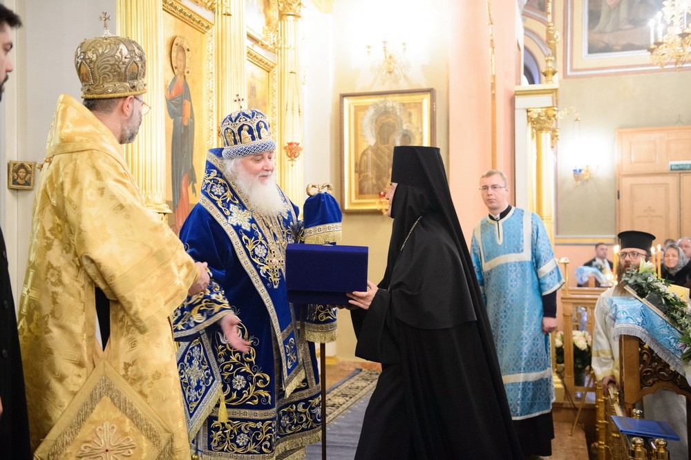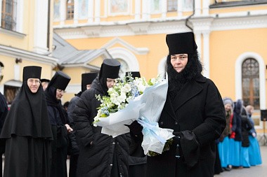 А наша соборная молитва сегодня – об Отечестве земном, о нашей Святой Руси, "о властех, воинстве и народе ея" и, в первую очередь, о здравии и благоденствии Предстоятеля нашей Церкви Святейшего Патриарха Московского и всея Руси Кирилла, нашего доброго и любящего отца. Мы от всей души благодарим Его Святейшество за внимание и заботу о своей Покровской обители, за то, что он благословил Вам, дорогой владыка, возглавить сегодня Божественную литургию. Сердечно благодарим Вас за тот праздничный настрой архиерейского богослужения, который передается всем сестрам и паломникам обители!