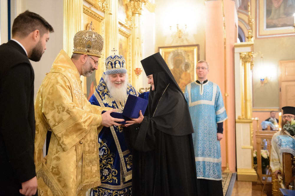 По окончании Литургии игумения Феофания приветствовала митрополита Арсения и митрополита Гаттаза: