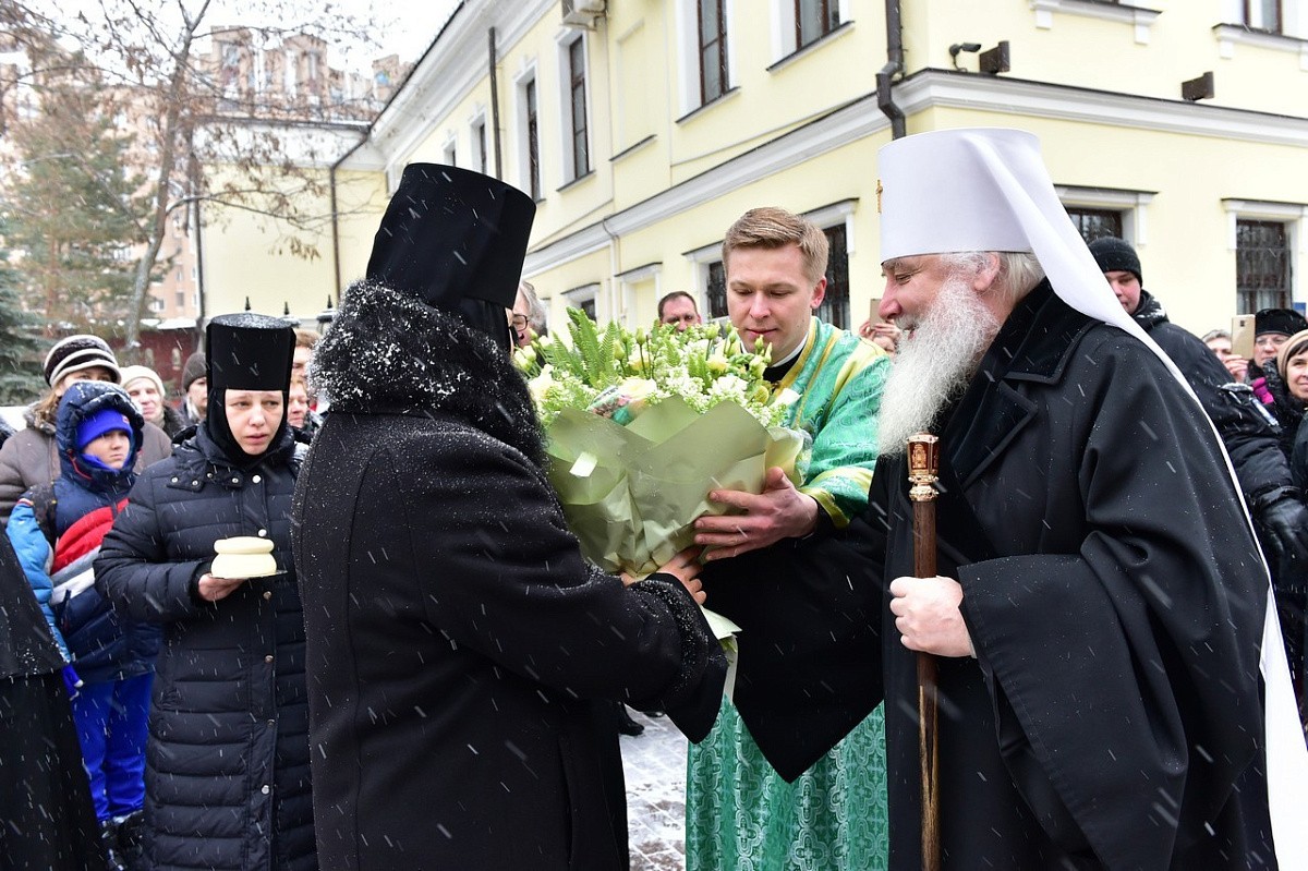Накануне всенощное бдение в обители совершил первый викарий Патриарха Московского и всея Руси по городу Москве, управляющий Центральным и Южным викариатствами столицы митрополит Истринский Арсений, которому сослужили клирики монастыря с приглашенными священнослужителями.