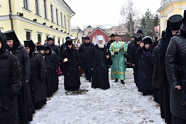 В свою очередь, митрополит Арсений обратился к собравшимся с архипастырским словом, в котором поздравил с престольным праздником обители епископа Иоанна, сослуживших клириков, игумению Феофанию с сестрами обители, гостей и прихожан.