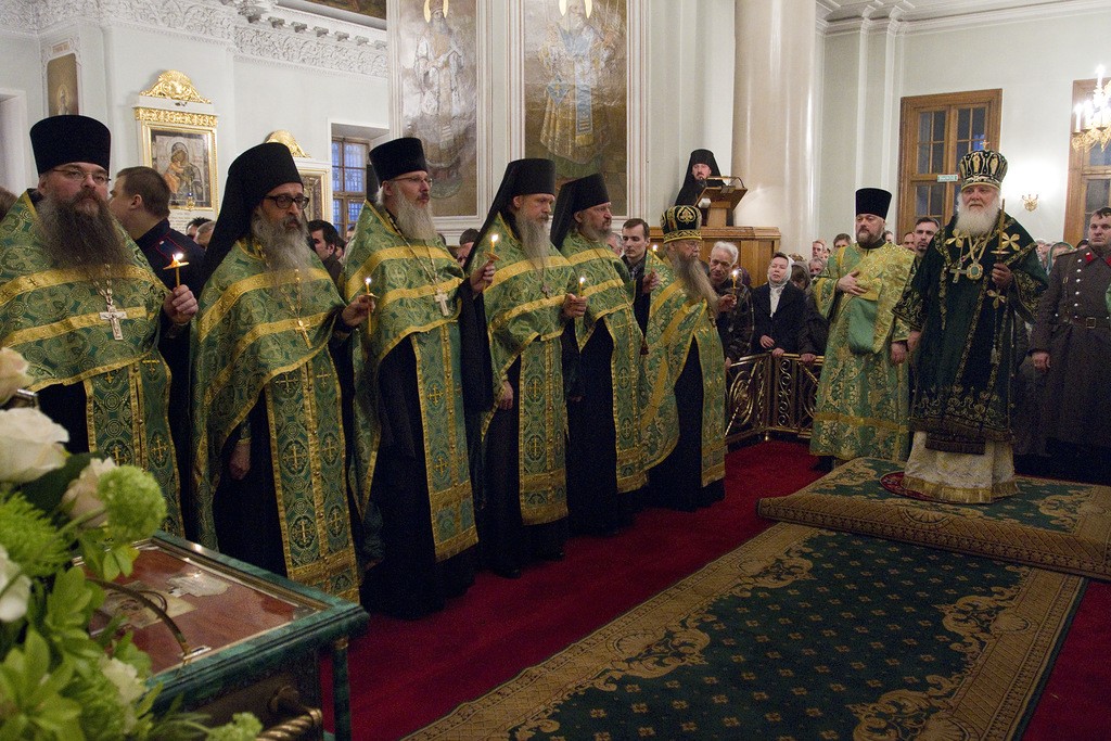 За всенощным бдением Его Высокопреосвященству сослужили наместник Даниловой обители архимандрит Алексий (Поликарпов) с братией монастыря в священном сане.