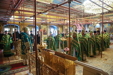 Затем в Троицком соборе монастыря митрополит Георгий возглавил молебен перед ракой с мощами преподобного Сергия Радонежского.