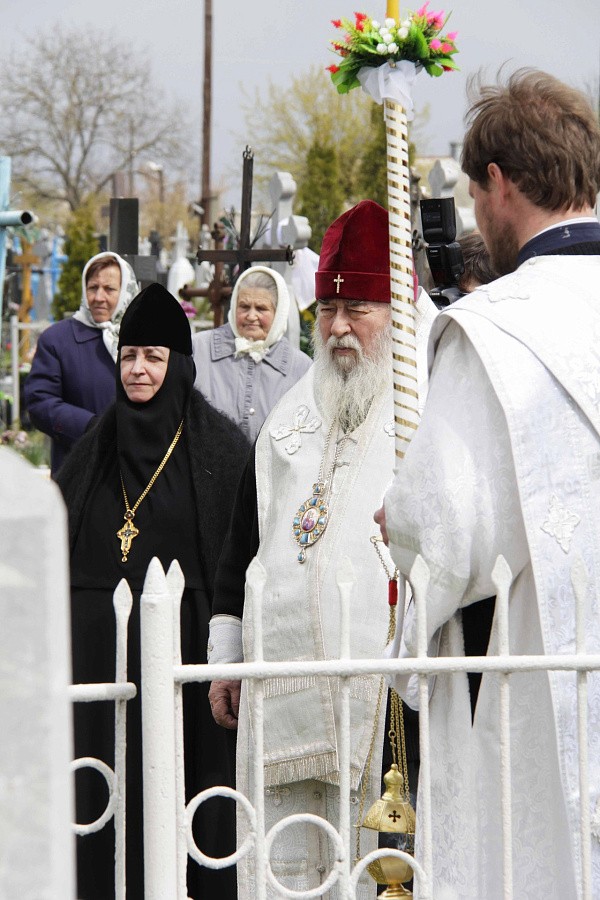 В день монастырской Радоницы Божественную литургию возглавил митрополит Днепропетровский и Павлоградский Ириней, приехавший помолиться за своих усопших родителей, которые погребены на Георгиевском городском кладбище.