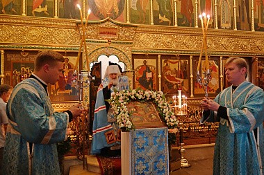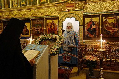 По завершении богослужения, Высокопреосвященнейший митрополит Арсений передал поздравление Его Святейшества Святейшего Патриарха Московского и всея Руси Кирилла с престольным праздником обители и обратился к молящимся с проповедью, в которой сказал:
