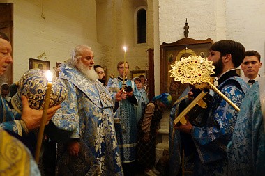 Его Высокопреосвященству сослужило духовенство обители.