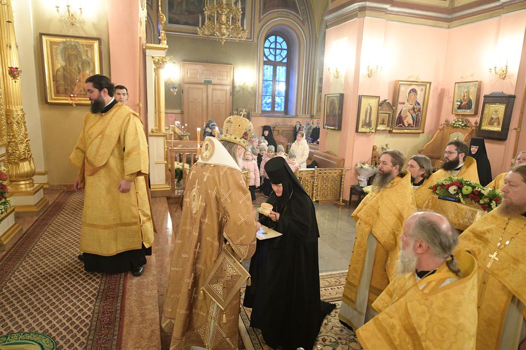 Митрополит Феогност огласил поздравление Святейшего Патриарха Московского и всея Руси Кирилла в адрес игумении Феофании с днем тезоименитства.