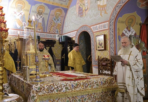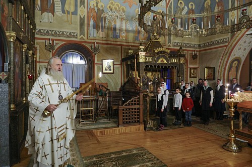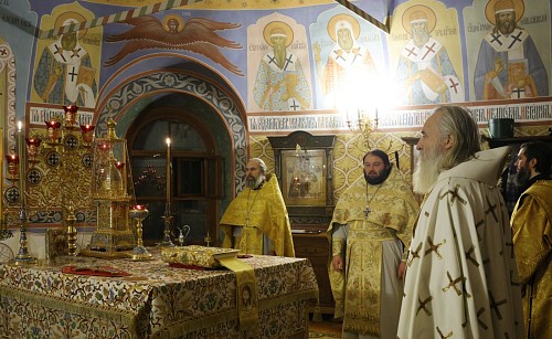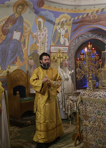 Его Высокопреосвященству сослужили клирики Стефано-Махрищского монастыря, гости обители в священном сане.