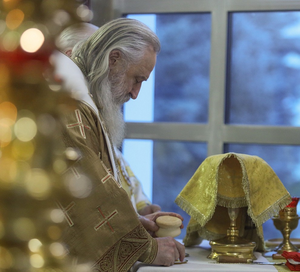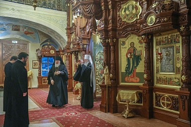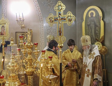 Его Высокопреосвященству сослужили наместник Екатерининского монастыря епископ Видновский Тихон, братия обители в священном сане.