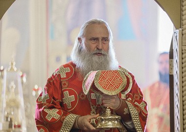 Его Высокопреосвященству сослужили клирик обители протоиерей Владимир Постников и клирик Заиконоспасского ставропигиального мужского монастыря города Москвы иеромонах Савва (Буханцев).