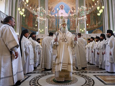 Его Высокопреосвященству сослужили наместник Сретенского монастыря иеромонах Иоанн (Лудищев) и братия обители в священном сане.