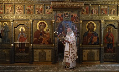 Богослужебные песнопения были исполнены монастырским хором и мужским хором храма Живоначальной Троицы в Останкине.