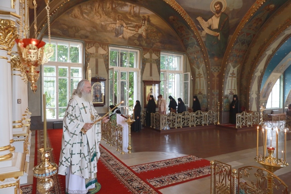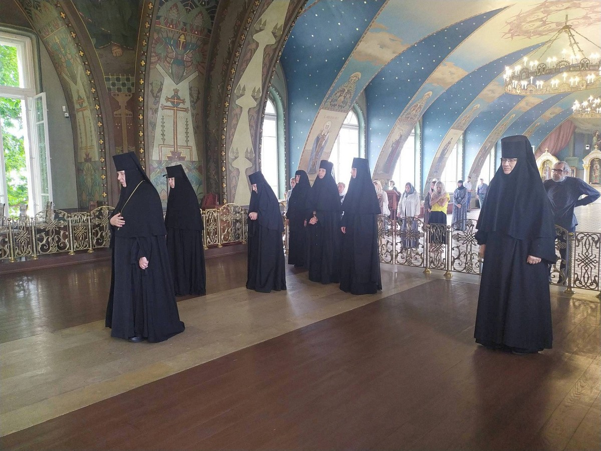 За богослужением молились настоятельница монастыря игумения Викторина (Перминова) с сестрами, зав. канцелярией Синодального отдела по монастырям и монашеству