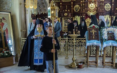 Его Высокопреосвященству сослужили наместник Екатерининского монастыря епископ Видновский Тихон и братия обители в священном сане.