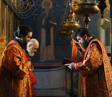 Раннюю Божественную литургию в Никольском соборе обители возглавил председатель Синодального отдела по монастырям и монашеству, наместник Донского ставропигиального мужского монастыря митрополит Каширский Феогност.