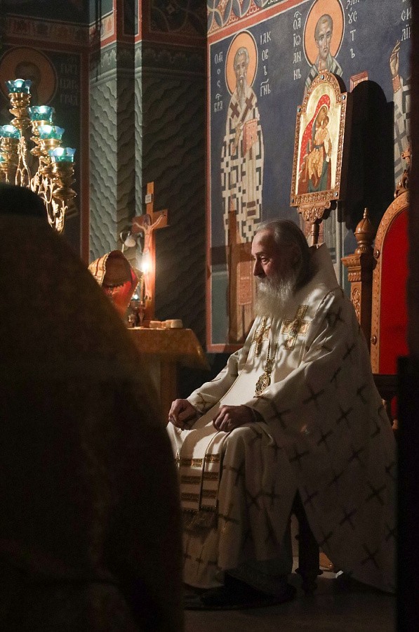 По окончании богослужения митрополит Феогност провел с матушкой игуменией рабочее совещание по вопросам Отдела и по подготовке к докладу на Епархиальном совете.