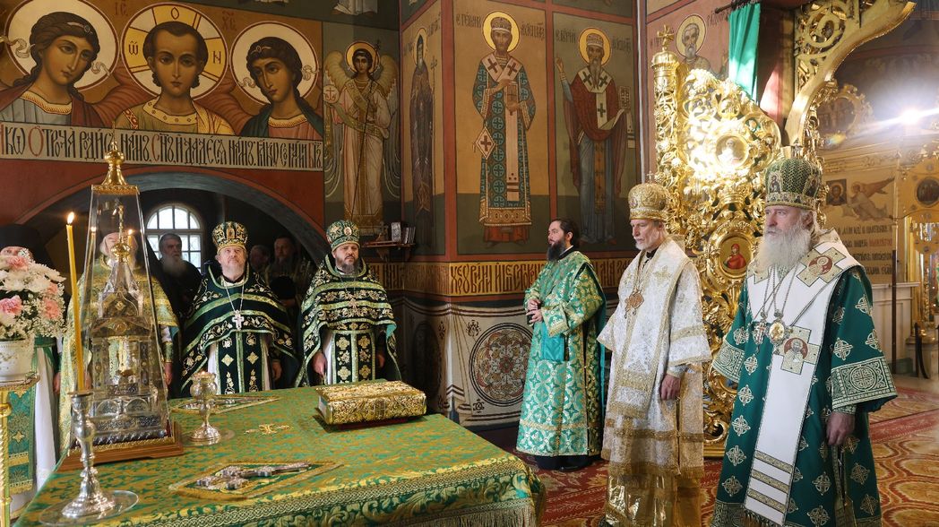 Его Высокопреосвященство от имени Святейшего Патриарха Московского и всея Руси Кирилла, священноархимандрита обители, поздравил братию монастыря и многочисленных паломников с престольным праздником.