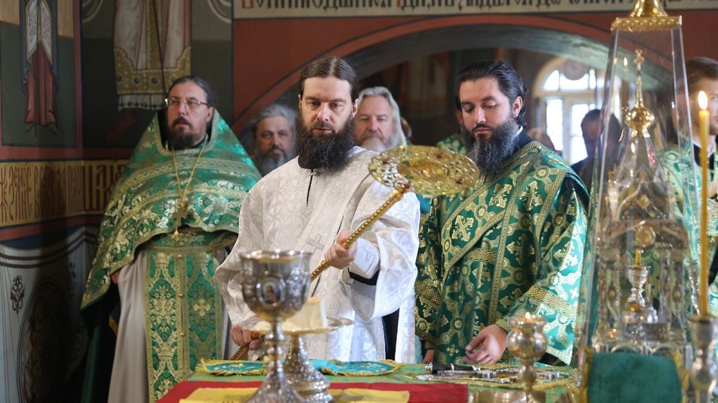 Божественную литургию в Успенском соборе совершили митрополит Каширский Феогност, председатель Синодального отдела по монастырям и монашеству, наместник Донского ставропигиального мужского монастыря Москвы; митрополит Игнатий; наместник Иосифо-Волоцкого монастыря архимандрит Сергий (Воронков) с братией; настоятель подворья Патриарха Московского и всея Руси храмов Андроникова монастыря архимандрит Дионисий (Колесник); благочинный Лотошинского округа священник Алексий Кошелев; представители московского духовенства, священнослужители Волоколамского благочиния.