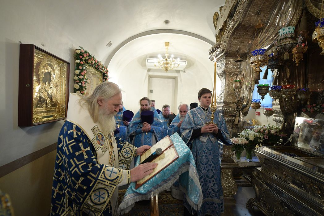У мощей блаженной Матроны Московской митрополит Феогност прочитал молитву праведной старице.