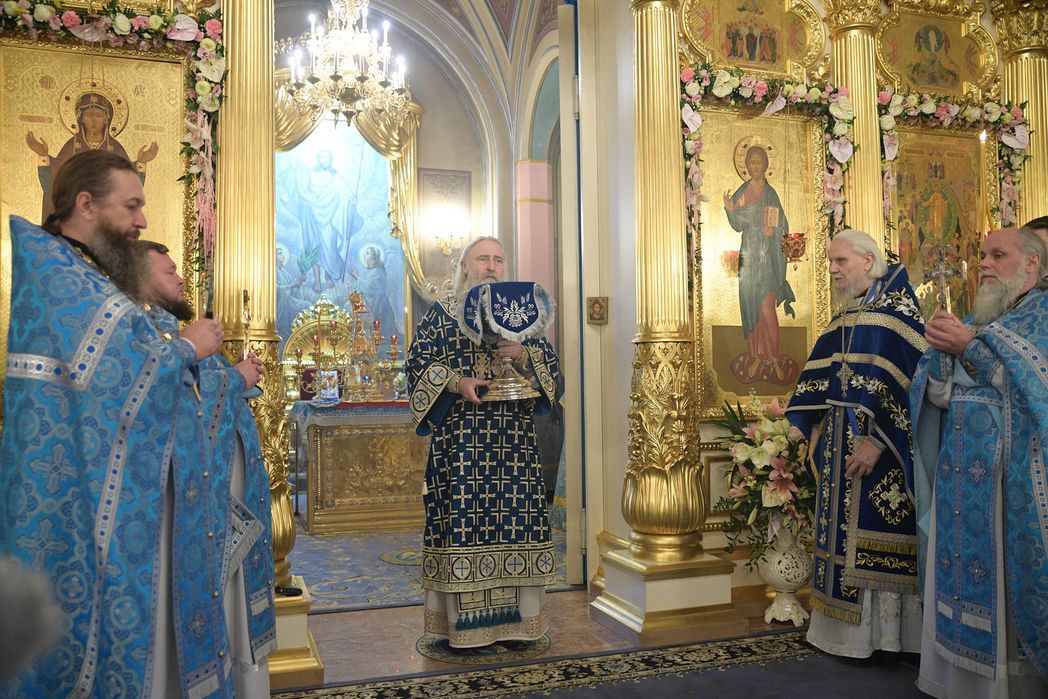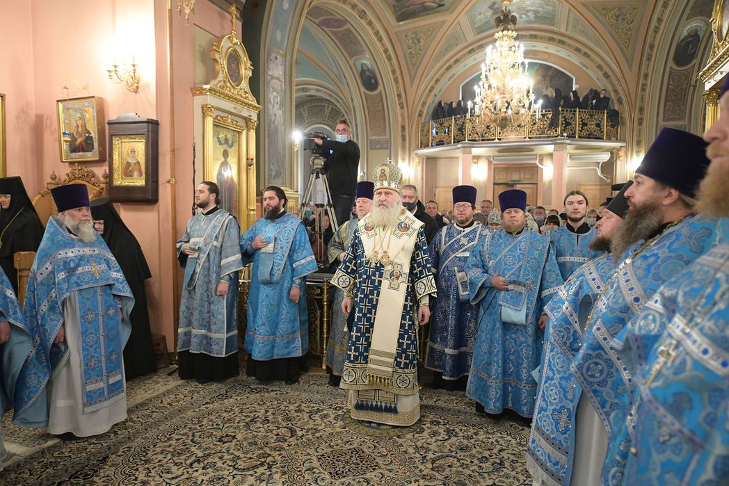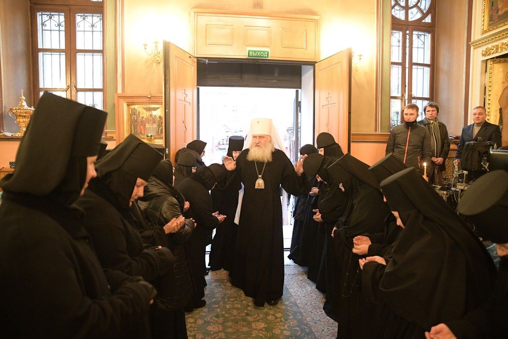 По прибытии в монастырь архиерей поклонился честным мощам блаженной Матроны Московской, после чего возглавил позднюю Божественную литургию в Воскресенском соборе обители.