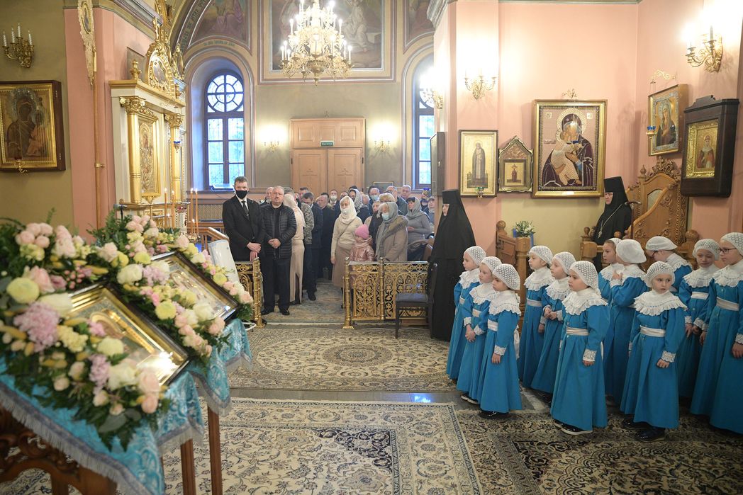 За богослужением молились настоятельница Покровского монастыря игумения Феофания (Мискина) с сестрами, воспитанницы монастырского детского приюта, прихожане и паломники.