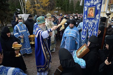 22 ноября 2021 года, в праздник тезоименитства и 140-летия со дня рождения святой праведной блаженной Матроны Московской, по благословению Святейшего Патриарха Московского и всея Руси Кирилла, председатель Синодального отдела по монастырям и монашеству митрополит Каширский Феогност возглавил в Покровском ставропигиальном женском монастыре города Москвы торжества по случаю престольного праздника обители.