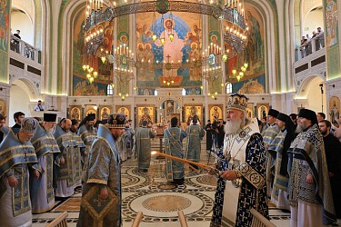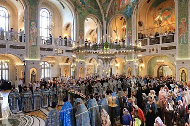 Богослужебные песнопения исполнили хоры Сретенского монастыря и Сретенской духовной академии.